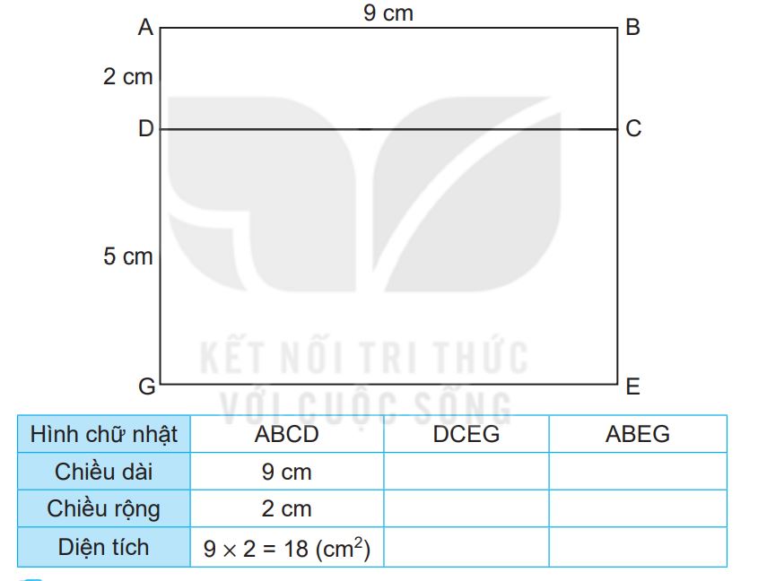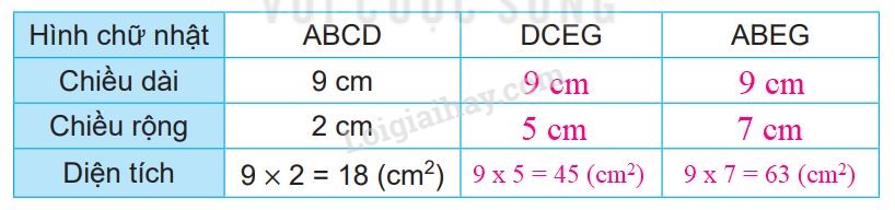 Diện tích hình chữ nhật = chiều dài x chiều rộng (cùng đơn vị đo).