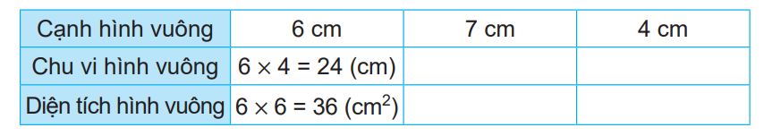 - Chu vi hình vuông bằng độ dài một cạnh nhân với 4.