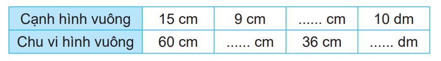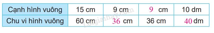 - Tìm độ dài cạnh hình vuông bằng cách lấy chu vi hình đó chia cho 4.