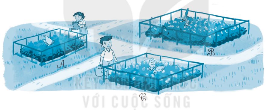 Vậy mảnh đất A trồng hoa cúc, mảnh đất B trồng hoa hồng, mảnh đất C trồng mẫu đơn.