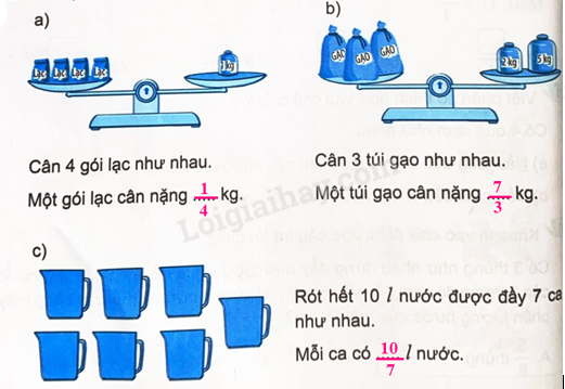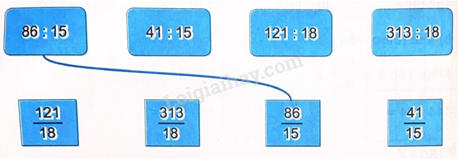 Viết thương của mỗi phép chia dưới dạng phân số vào chỗ chấm.