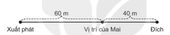 Việt và Mai chạy tiếp sức. Việt chạy đoạn đường dài 60 m từ vạch xuất phát đến vị trí của Mai. Mai chạy đoạn đường còn lại về đích dài 40 m. Hỏi đoạn đường chạy tiếp sức dài bao nhiêu mét?