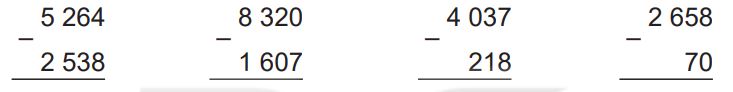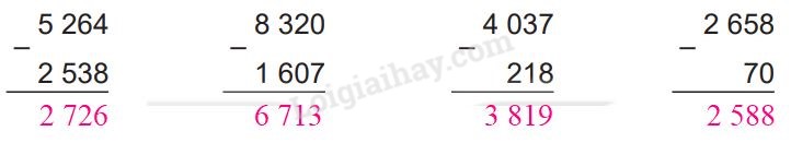 Thực hiện phép trừ các chữ số thẳng cột lần lượt từ phải sang trái.