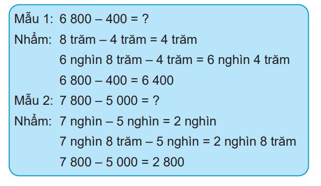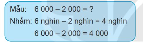 Quan sát ví dụ mẫu rồi tính nhẩm phép trừ các số tròn nghìn.