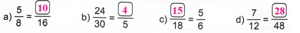 - Áp dụng tính chất cơ bản của phân số để tìm các số bị che lấp.
