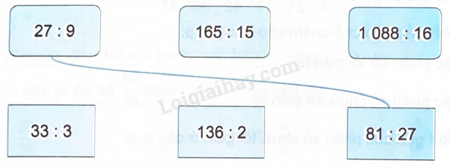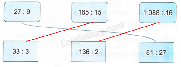 Thực hiện tính rồi nối hai phép tính có thương bằng nhau.