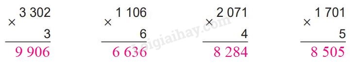 Nhân chữ số hàng nghìn với thừa số thứ hai rồi viết thêm vào tận cùng kết quả ba chữ số 0.