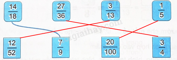 Nối hai phân số bằng nhau (theo mẫu).