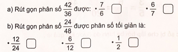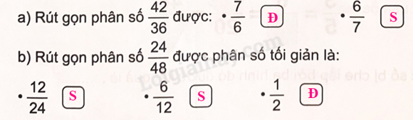 b) Rút gọn các phân số chưa tối giản:
