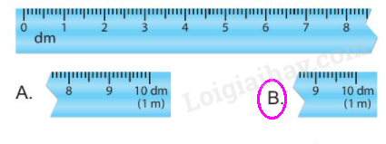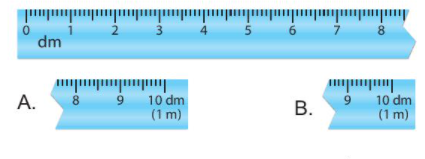 Quan sát hình vẽ ta thấy đoạn thước bị gãy đã có vạch số 8 dm, vậy đoạn thước bị gãy còn lại sẽ có vạch số 9 dm và 10 dm.