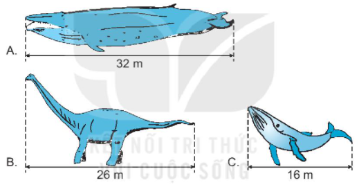 b) Con vật B dài hơn con vật C là 26 m – 16 m = 10 m.