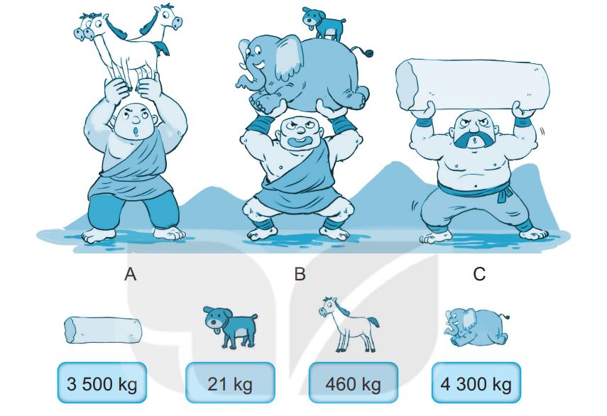 Vậy người khổng lồ B nâng được nhiều ki-lô-gam nhất.