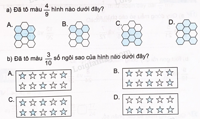 b) Rút gọn các phân số.