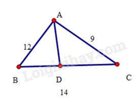 Tam giác \(ABC\) có ba cạnh \(AB = 12cm,BC = 14cm,AC = 9cm\) và \(AD\) là đường phân giác của góc \(A\left( {D \in BC} \right).\) Tính độ dài các đoạn thẳng \(BD\) và \(CD.\)