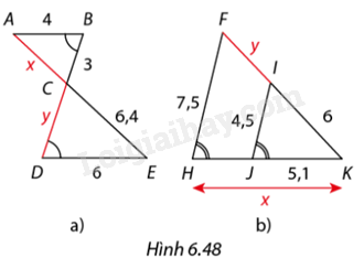 Tìm độ dài \(x,y\) trong mỗi trường hợp ở Hình 6.48.