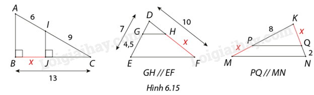 Tính độ dài \(x\) trong mỗi trường hợp ở hình 6.15.