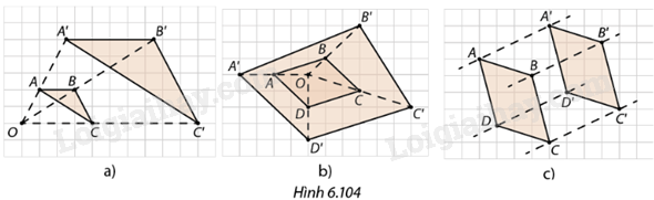 Trong trường hợp nào ở Hình 6.104 ta có cặp hình đồng dạng phối cảnh?