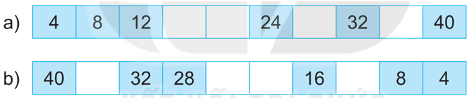 Đếm thêm 4 đơn vị (hoặc đếm lùi 4 đơn vị) rồi viết số còn thiếu vào ô trống.