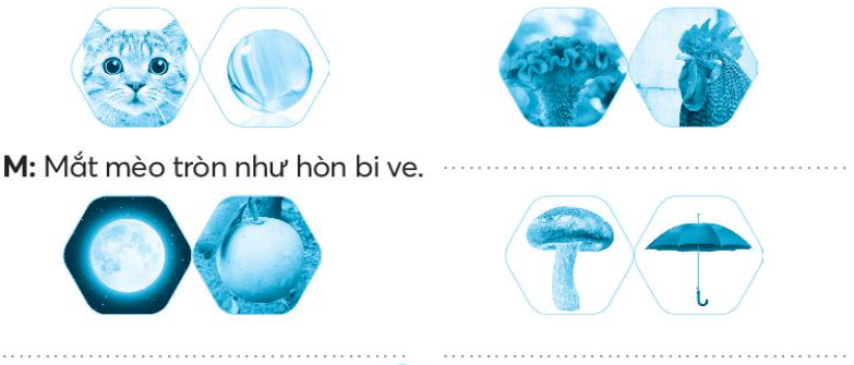 Quan sát tranh, tìm những sự vật có đặc điểm giống nhau (hình dạng, màu sắc,...). Đặt câu so sánh các sự vật đó với nhau.