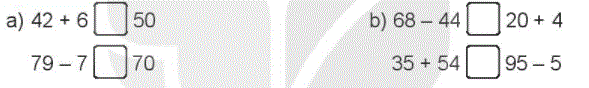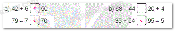 Tính tổng hoặc hiệu hai số rồi so sánh với vế còn lại, từ đó ta điền dấu thích hợp vào ô trống.