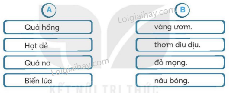 Em đọc kĩ các từ ngữ ở cột A và cột B và nối đặc điểm tương ứng của từng loại quả.