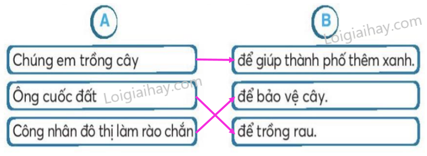 Dựa vào bài đọc, viết tên những công việc mà người nông dân phải làm để có mùa thu hoạch. Nối từ ngữ ở cột A với từ ngữ phù hợp ở cột B để tạo câu nêu đặc điểm. Viết một câu nêu đặc điểm của loài cây hoặc loại quả mà em thích. Điền tiếng bắt đầu bằng ng hoặc ngh vào chỗ trống. Chọn a hoặc b. Viết tên các loại cây lương thực và cây ăn quả mà em biết. Viết một câu về việc bạn nhỏ đang làm dưới mỗi tranh.