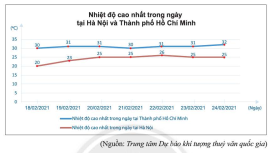 Ngày 18/02/2021 có nhiệt độ chênh lệch nhiều nhất giữa hai thành phố