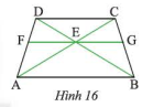 Cho hình thang cân \(ABCD\) có \(AB\) // \(CD\). Qua giao điểm \(E\) của \(AC\) và \(BD\), ta vẽ đường thẳng song song với \(AB\) và cắt \(AD\), \(BC\) lần lượt tại \(F\) và \(G\) (Hình 16). Chứng minh rằng \(EG\) là tia phân giác của góc \(CEB\).