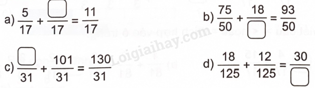 - Dựa vào cách cộng hai phân số cùng mẫu số để tìm số còn thiếu ở ô trống
