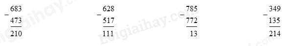 683 – 473 628 – 517 785 – 772 349 – 135 Tính nhẩm.