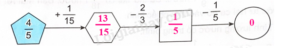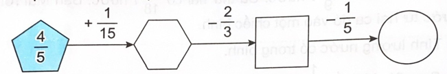 Thực hiện các phép tính theo chiều mũi tên rồi điền phân số thích hợp vào ô trống.