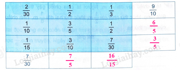 Tính tổng các phân số trên mỗi hàng, mỗi cột (theo mẫu).
