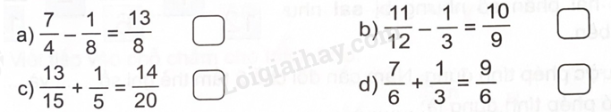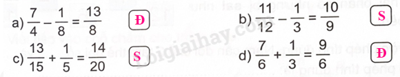 - Dựa vào quy tắc cộng, trừ hai phân số để xác định câu đúng, câu sai.