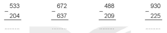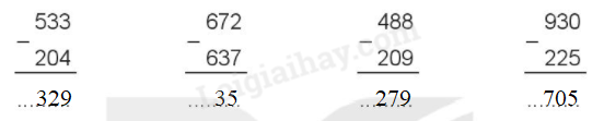 Thực hiện trừ các chữ số thẳng cột theo thứ tự từ hàng đơn vị đến hàng chục, hàng trăm