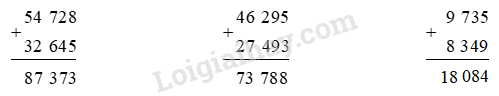 Một cửa hàng, buổi sáng bán 6 680 l xăng, biểu chiều bán 7 256 l xăng và buổi tối bán 4 529 l xăng...Đặt tính rồi tính 54 728 + 32 645 46 295 + 27 493 9 735 + 8 349