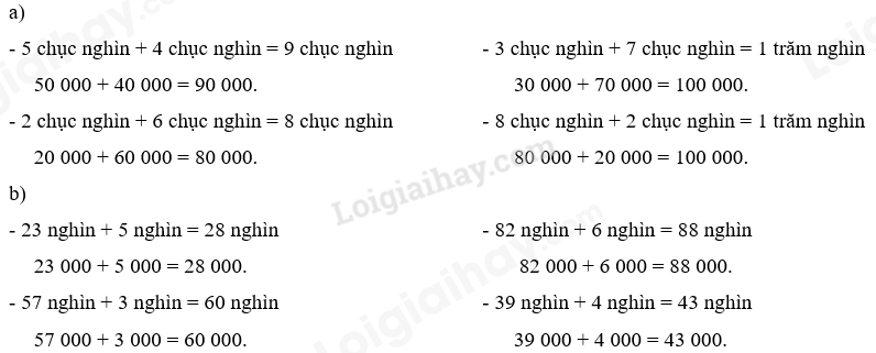 Quan sát ví dụ mẫu rồi tính nhẩm phép cộng các số tròn chục nghìn, tròn nghìn.