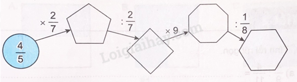 Thực hiện các phép tính theo chiều mũi tên rồi điền phân số thích hợp vào ô trống.
