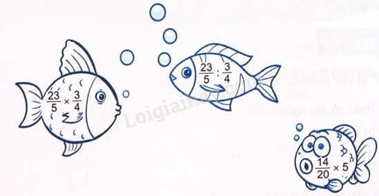 Vậy con cá ghi phép tính có kết quả không phải lớn nhất và không phải bé nhất là con cá $\frac{{14}}{{20}} \times 5$