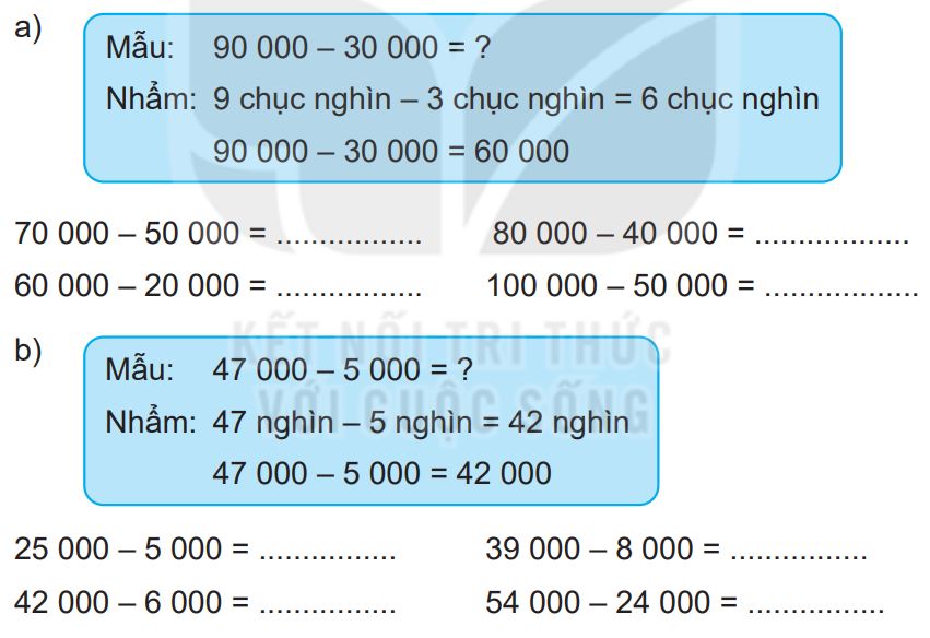 Quan sát ví dụ mẫu rồi tính nhẩm phép trừ các số tròn chục nghìn, tròn nghìn.