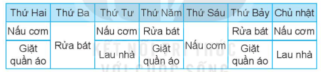 Rửa bát: 3 ngày Lau nhà: 2 ngày
