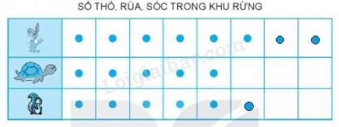 Mỗi con thỏ, rùa, sóc biểu thị bằng một chấm tròn. Trong khu rừng có 8 con thỏ, 6 con sóc, 5 con rùa.