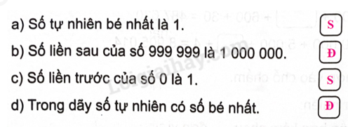 Dựa vào kiến thức về dãy số tự nhiên em xác định tính đúng, sai của mỗi câu.