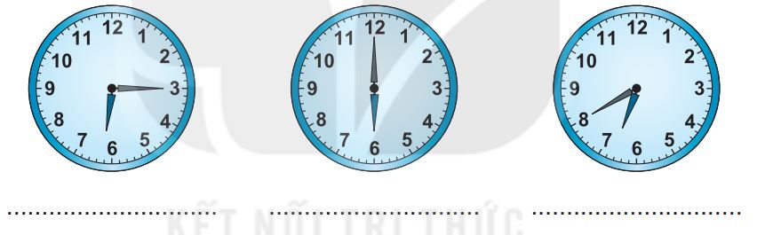 Quan sát thời gian trên mỗi đồng hồ rồi viết tên hoạt động thích hợp.