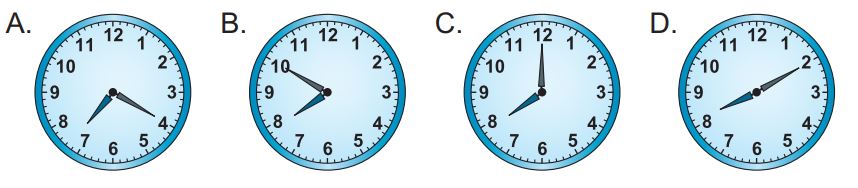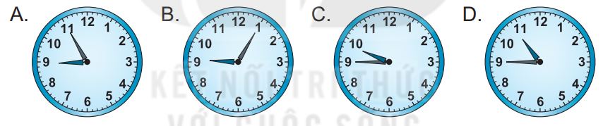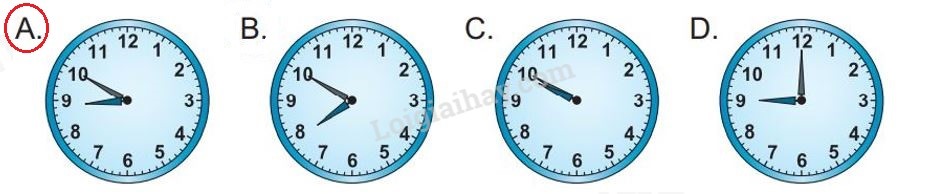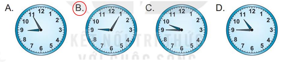 Quan sát và xác định thời gian trên đồng hồ để trả lời câu hỏi.