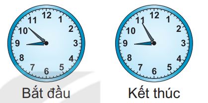 c) Rô-bốt đã nhờ mẹ tạo hình cho chiếc bảnh. Thời gian bắt đầu và kết thúc như hình bên. Hỏi mẹ tạo hình bánh trong bao nhiêu phút?