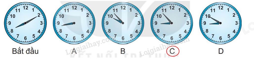 Xem đồng hồ, tìm khoảng thời gian trôi qua giữa hai giờ và trả lời câu hỏi của bài toán.