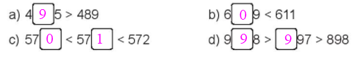 Để so sánh các số có ba chữ số, ta so sánh các cặp chữ số cùng hàng từ hàng trăm, hàng chục, hàng đơn vị.