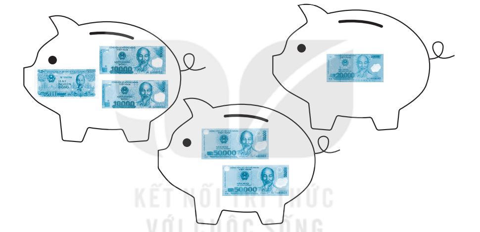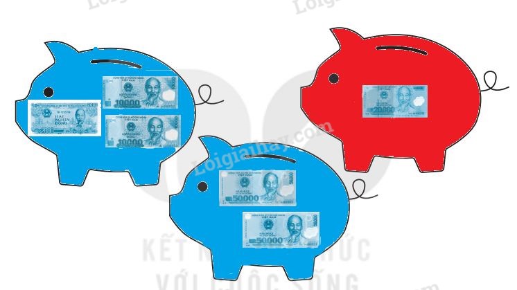 Tính tổng số tiền trong mỗi chú lợn rồi rồi tô màu theo yêu cầu đề bài.