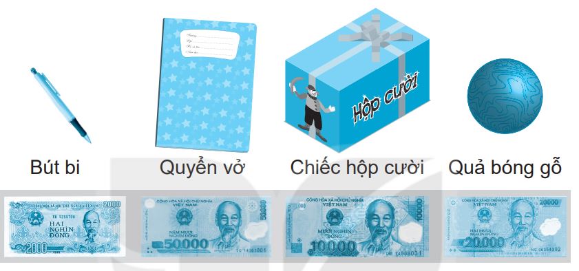 quả bóng gỗ: 20 000 đồng; quyển vở: 10 000 đồng