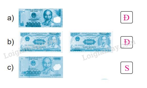 a) Mỗi món đồ sau được trả bằng một tờ tiền trong hình dưới đây.